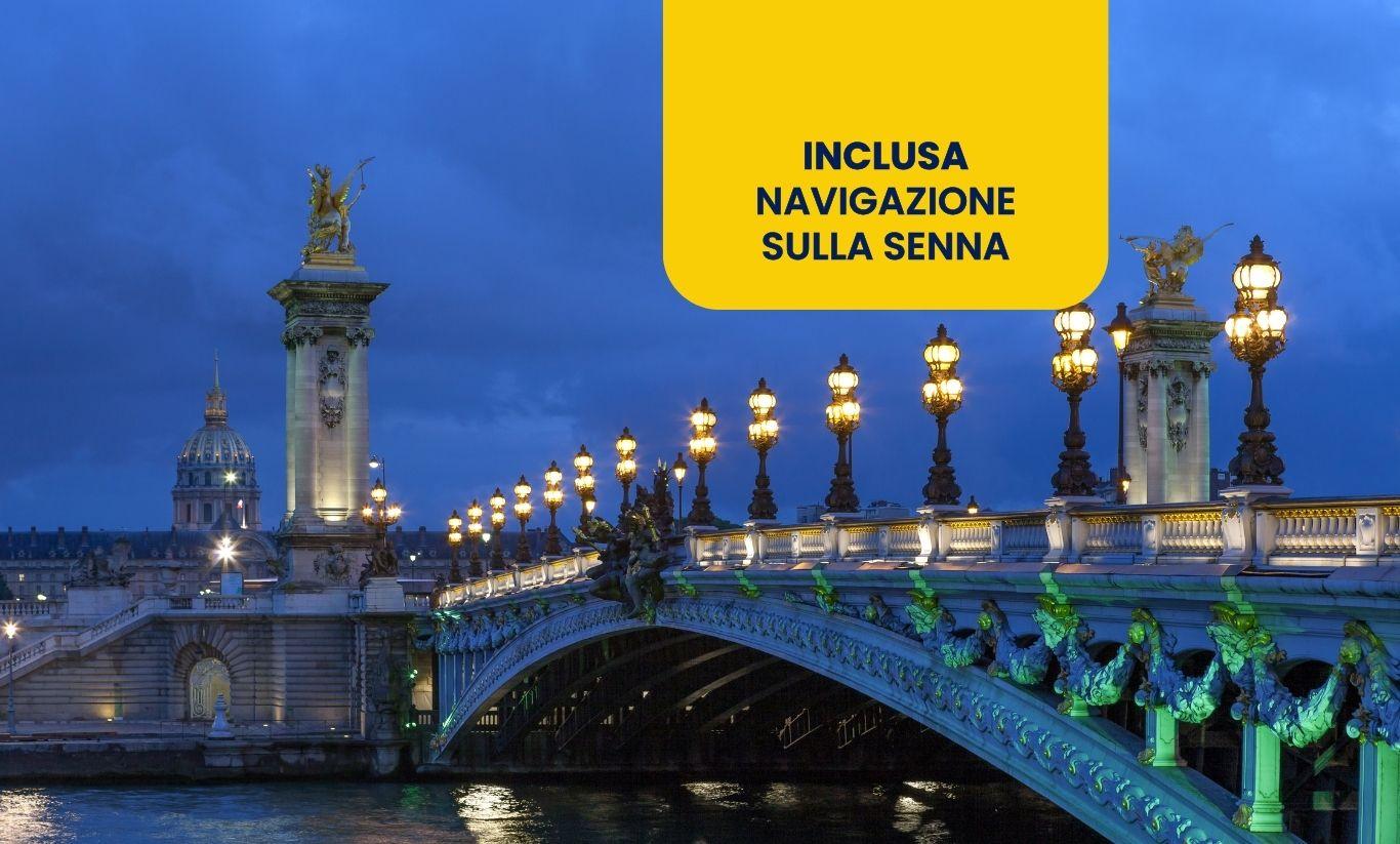 Nel pomeriggio passeggiata con l’accompagnatrice e navigazione sulla Senna a bordo del celebre Bateau Mouche.